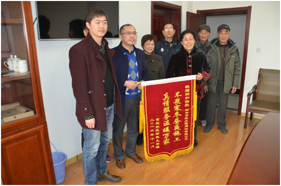 “你們的服務真是太周到了!終于解決了我們小區(qū)多年來的集中供熱問題,我們代表紡機廠宿舍全體熱用戶向你們表示忠心感謝!”11月30日下午,紡機廠宿舍幾名熱用戶來到濟寧四和供熱有限公司,送來一面繡有“不畏寒冬晝夜施工真情服務溫暖萬家”的錦旗,對四和供熱公司工作人員認真負責、高效便民的優(yōu)質服務表示感謝。