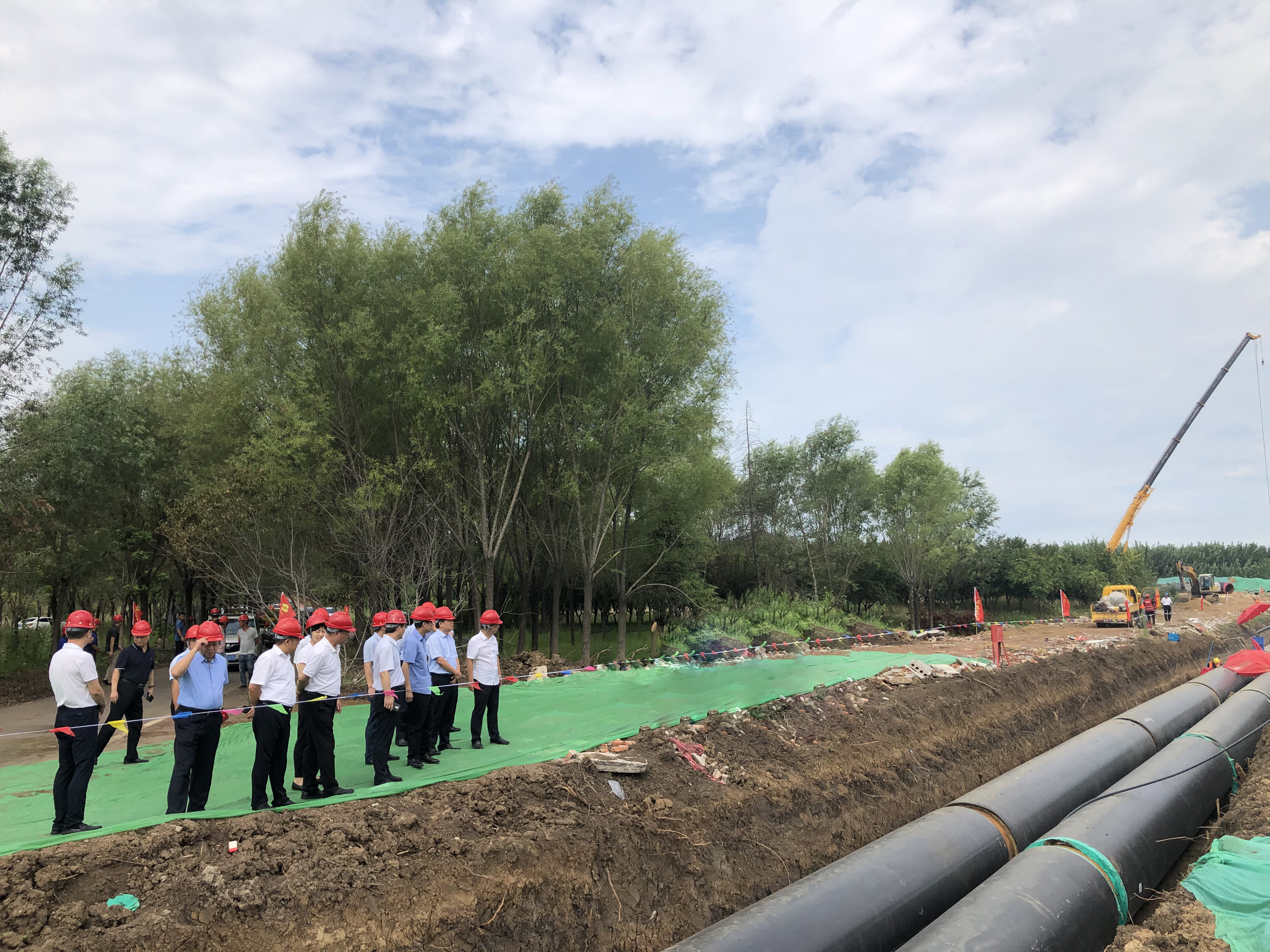 李魯董事長(zhǎng)一行先后來到熱源替換項(xiàng)目管網(wǎng)施工第五、四、二標(biāo)段及南躍進(jìn)溝頂管坑施工現(xiàn)場(chǎng),詳細(xì)詢問了熱源替換項(xiàng)目管網(wǎng)施工進(jìn)展情況及施工難點(diǎn)等相關(guān)事宜,熱電集團(tuán)領(lǐng)導(dǎo)及負(fù)責(zé)人就集團(tuán)領(lǐng)導(dǎo)關(guān)心的問題進(jìn)行了一一解答。當(dāng)前,熱源替換項(xiàng)目正加速推進(jìn),自6月初正式動(dòng)工以來,熱源置換項(xiàng)目華能運(yùn)河電廠線,已完成溝槽開挖約6.5公里,供熱管道直埋段施工已完成工程量的30%,五處頂管已全部進(jìn)場(chǎng)施工,正進(jìn)行頂管工作坑的基坑支護(hù)及開挖工序。李魯董事長(zhǎng)對(duì)四和供熱公司熱源替換項(xiàng)目在酷暑天氣下,取得的施工進(jìn)展給予充分肯定,并對(duì)施工人員表示親切的慰問。