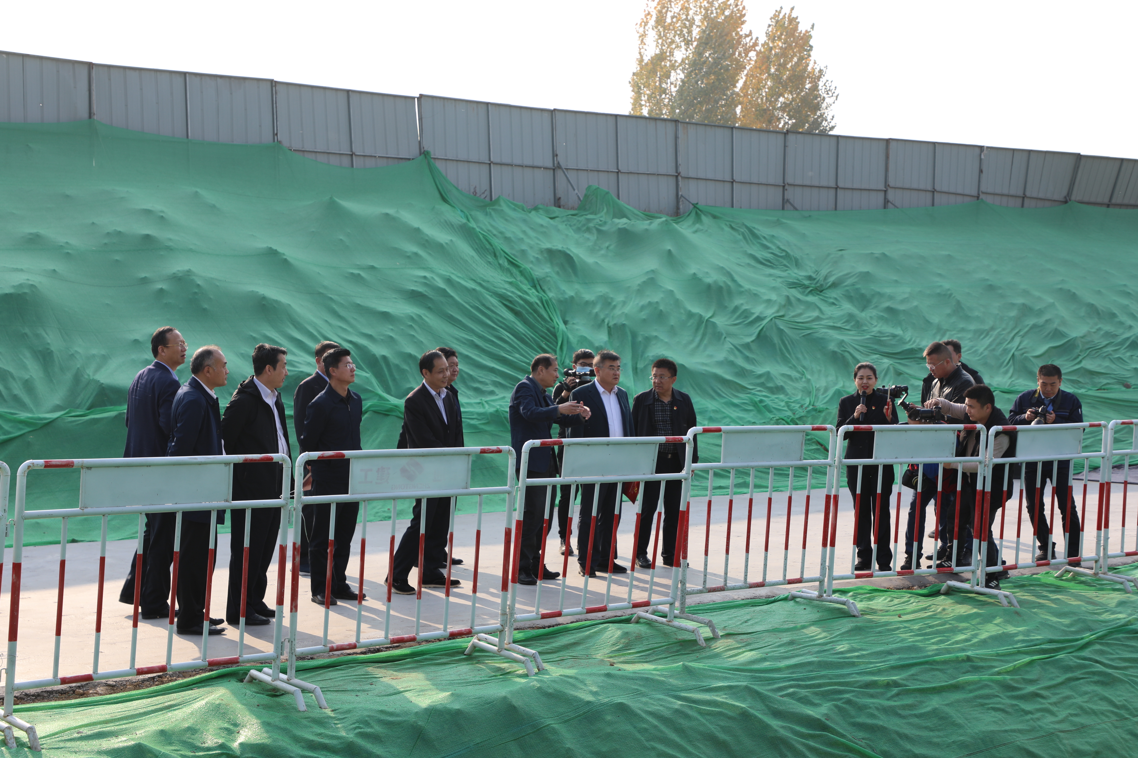 2020年11月11日,濟寧市國資委黨委書記、主任豐家雷帶隊前往南躍進溝與天寶寺溝頂管井18米深基坑現(xiàn)場參觀“踐初心黨旗紅,勇?lián)敔幰涣?rdquo;打贏西部熱源替換項目百日攻堅戰(zhàn)觀摩活動現(xiàn)場,山東公用控股有限公司黨委書記、董事長李魯,山東公用熱電集團有限公司黨委書記、董事長鄧剛,黨委副書記、總經理孫玉芝,黨委副書記、紀委書記李聲播陪同參觀。